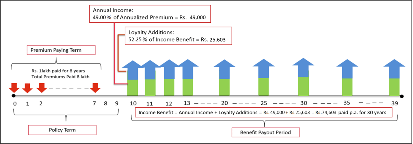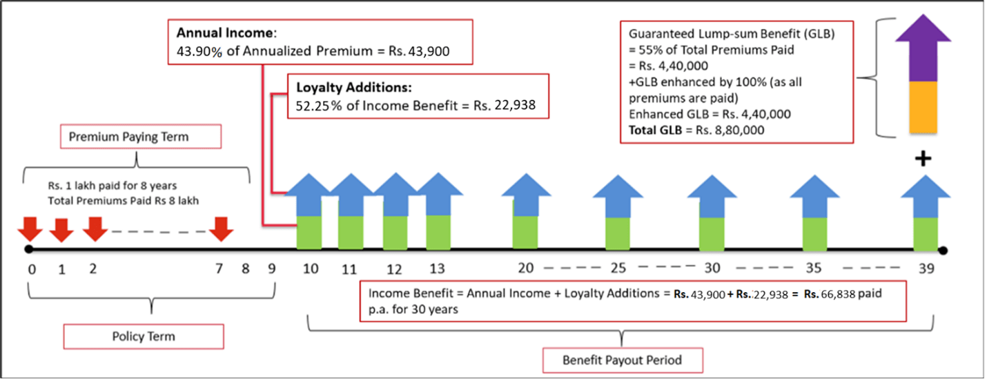 - Long-Term Income: Get guaranteed regular income for a period of 20, 25 or 30 years to ensure fulfilment of your recurring needs in the long term.