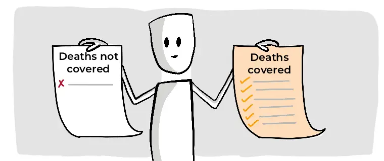 If a death happens due to participation in an action that’s considered illegal or unlawful, it will be covered.