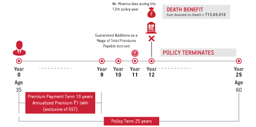 • For a Limited Pay policy, Guaranteed Additions accrue at the end of each policy year starting from the end of the policy year following the Premium Payment Term till the date of vesting i.e., till the end of the Policy Term.