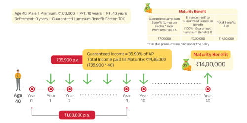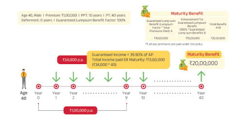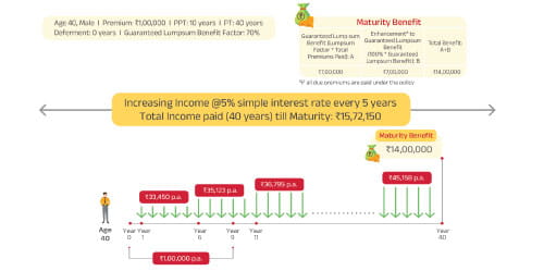 You can choose to receive income benefit in annual or semi-annual or quarterly or monthly frequency. Income will be paid at the end of chosen frequency as opted by you. |