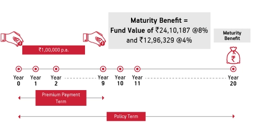 - Policyholder is required to maintain a minimum Fund Value of one Annualized Premium chosen and maximum of 25% of the Fund Value.