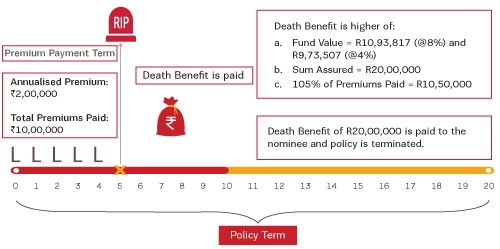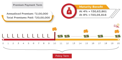 Annualized Premium: Rs. 2,00,000 | Premium Payment Term: 10 years | Policy Term: 20 years | Investment Option: Self-Managed Option | Fund Chosen: Small Cap Fund | Premium Payment Mode: Annual | Sum Assured Multiple: 10X | Sum Assured: Rs. 20,00,000